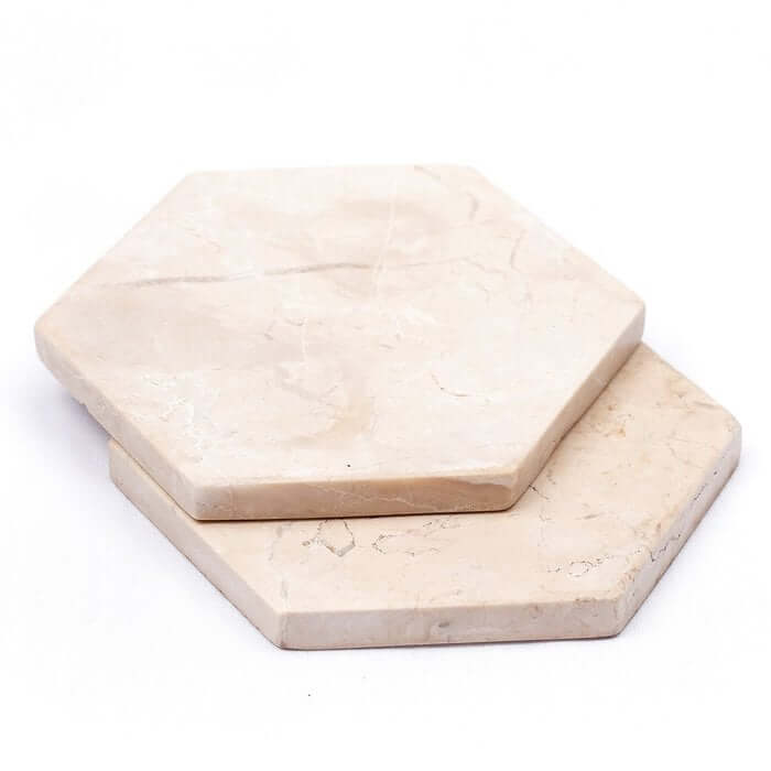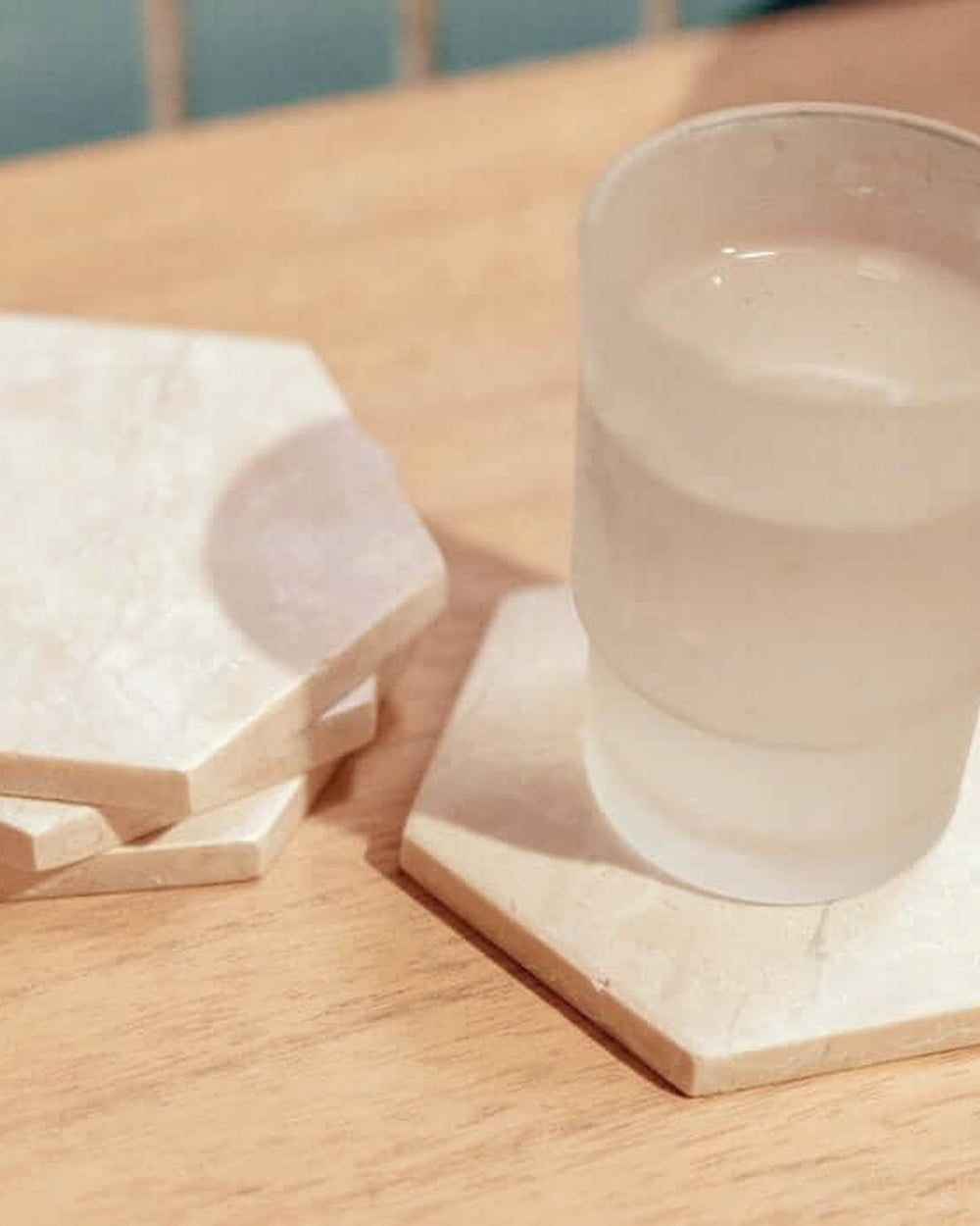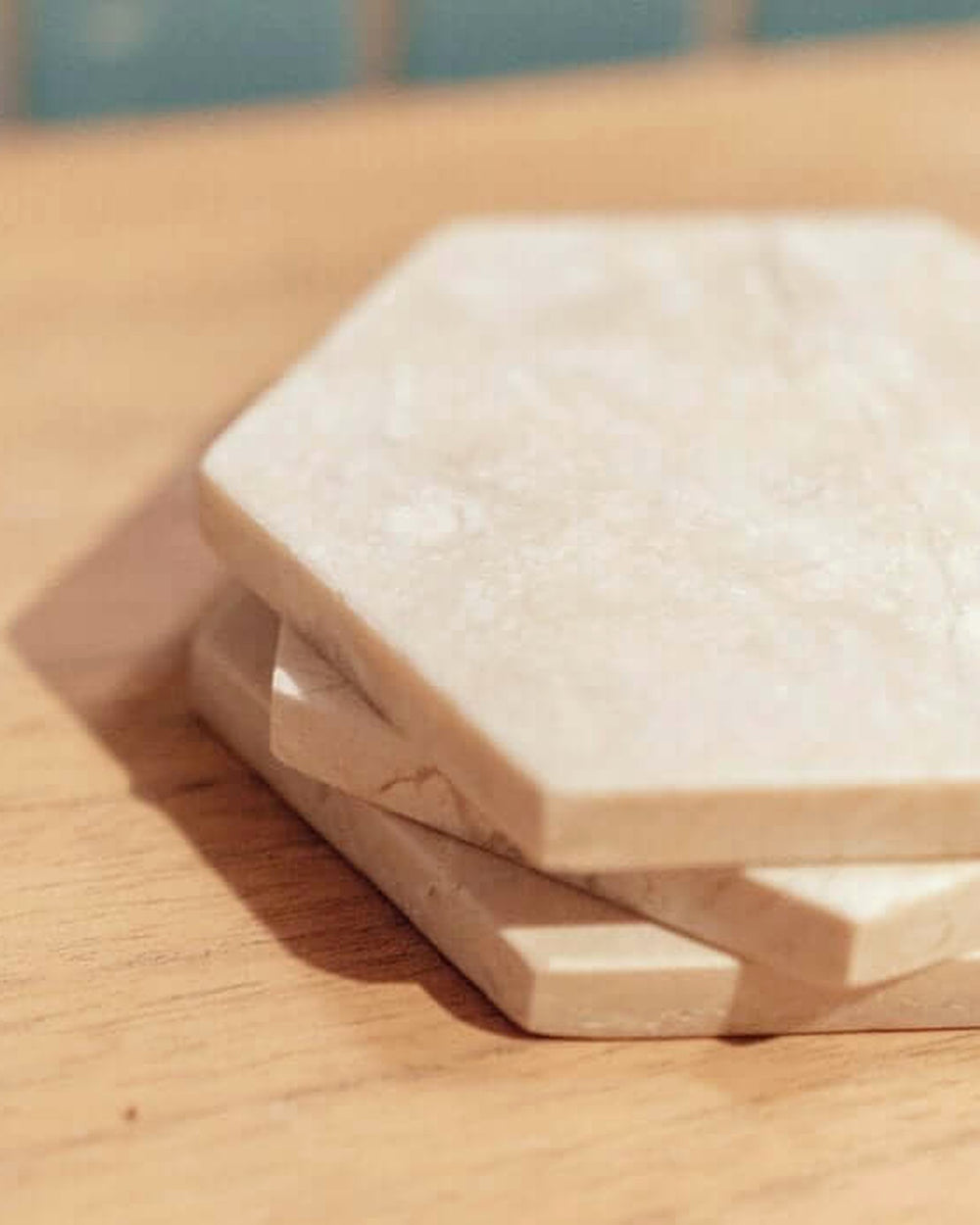 Named for the tesserae of ancient Roman mosaics, the Tessera Set echoes classical grandeur in crisp hexagonal marble coasters. Carved from natural stone with distinctive veining, each piece is one of a kind. Subtle yet striking, it’s a refined accent that carries a quiet tradition of elegance into the modern home.