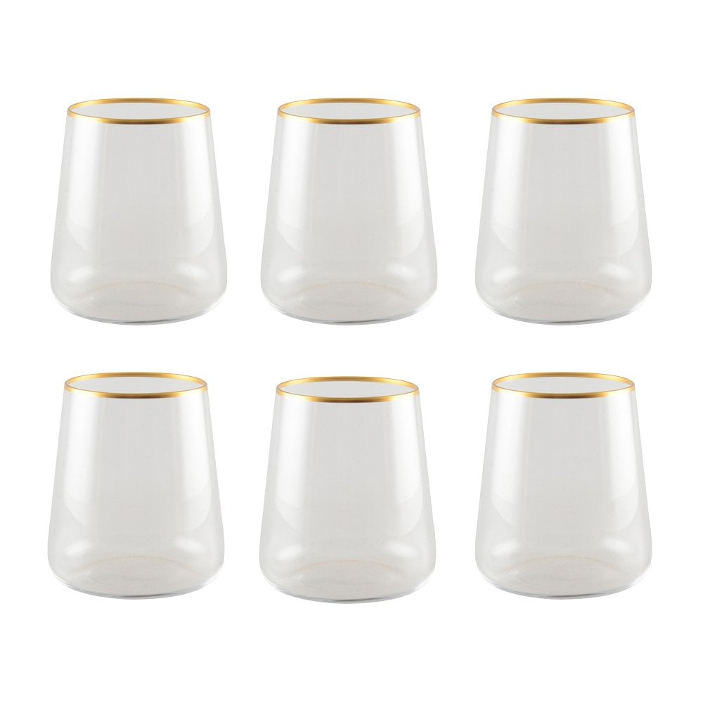 Subtle elegance, everyday. Lumiere tumblers echo the refinement of their stemmed counterparts, with a gold rim that catches the light. Inspired by the quiet luxury of old-world dining, they bring sophistication to any drink, transforming the simplest refreshment into a gesture of grace.